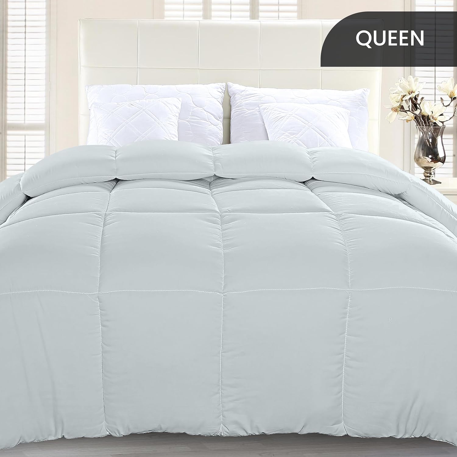 Comforter Duvet Insert, Quilted Comforter with Corner Tabs, Box Stitched Down Alternative Comforters Queen Size (Light Grey)