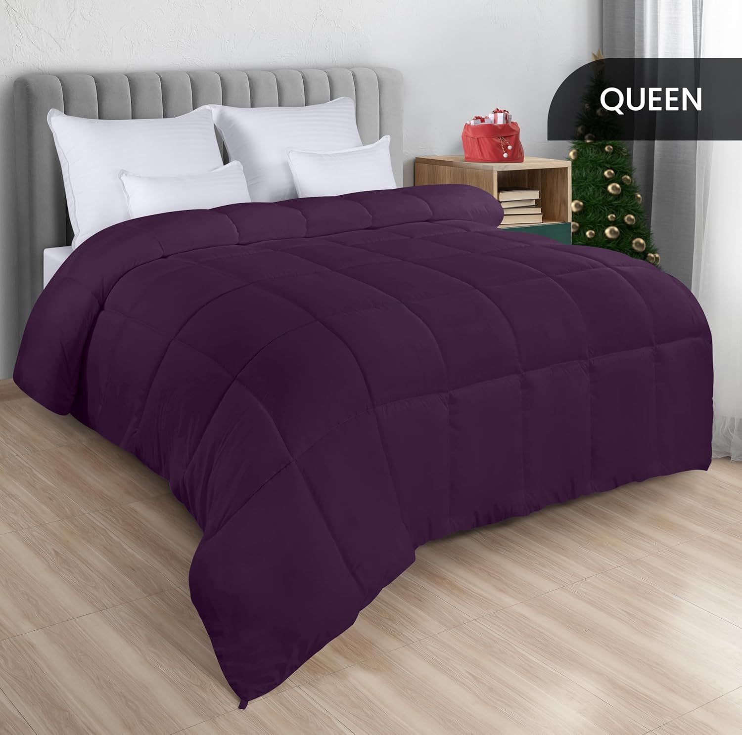 Comforters Queen Size, All Season Duvet Insert, Down Alternative Box Stitched Bed Comforter with Corner Tabs, Machine Washable (Plum)