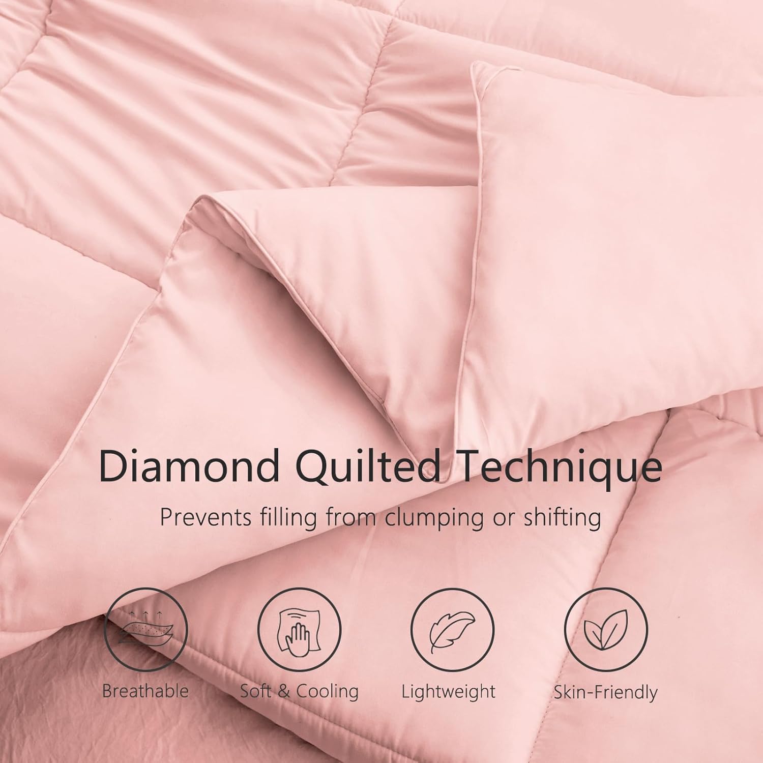 Queen Pink Comforter,All Season Quilted Down Alternative Duvet Insert with Corner Tabs, Breathable Bed Comforter, Summer Warm, Pink (88″x88″)